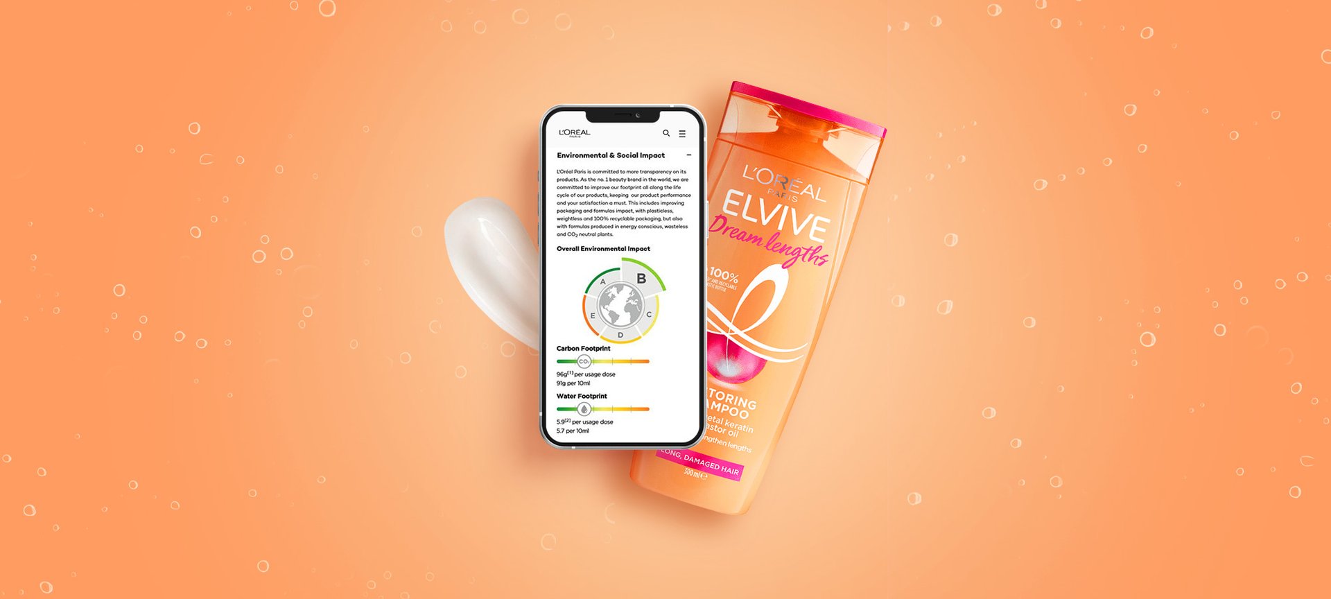 Skóre „celkového dopadu na životní prostředí“ vypočítané podle metodiky značky L'Oréal poskytuje přesnou představu o dopadu výrobků. Zohledňuje 14 faktorů dopadu na planetu* včetně emisí skleníkových plynů, dopadu na vodní zdroje, okyselování oceánů nebo dopadu na biologickou rozmanitost. Dopad se měří v každé fázi životního cyklu výrobku a do jeho výpočtu je zahrnuta nejen fáze získávání zdrojů, výroby a přepravy, ale také fáze používání spotřebiteli a míra recyklovatelnosti obalů. Výsledky jsou přehledně prezentovány.